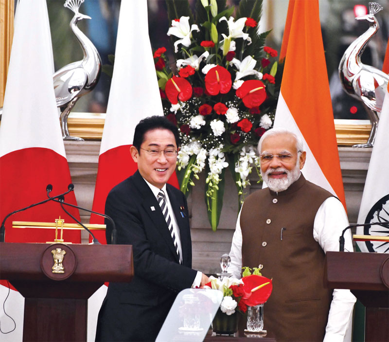 Japanese Prime Minister Fumio Kishida with Indian Prime Minister Narendra Modi
