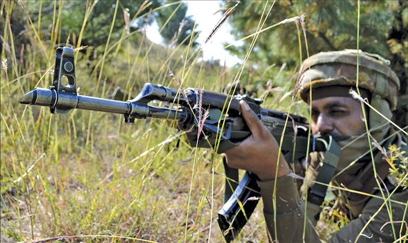An Army jawan during a counter insurgency operation in Keran sector, J&K