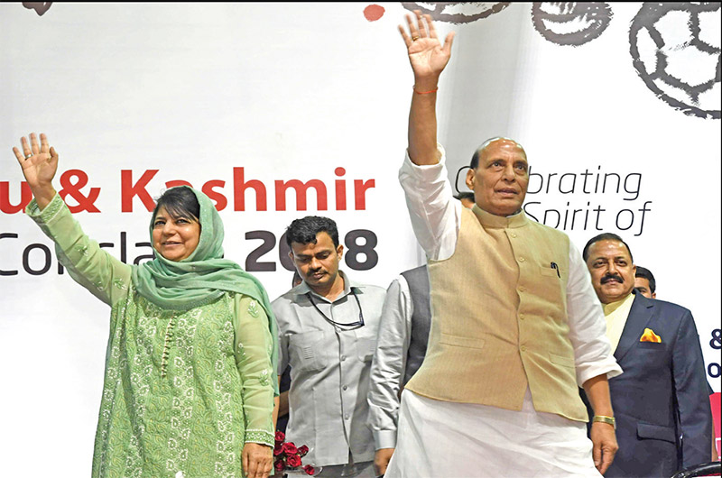 Union home minister Rajnath Singh with former chief minister Mehbooba Mufti