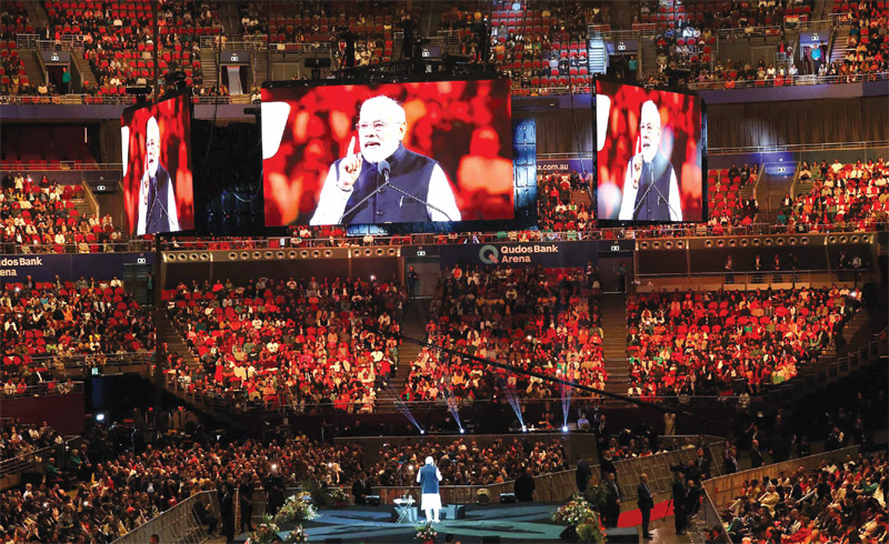 Prime Minister Narendra Modi addresses the Indian Diaspora in Sydney. He arrived in Australia after the G-7 Summit in Hiroshima