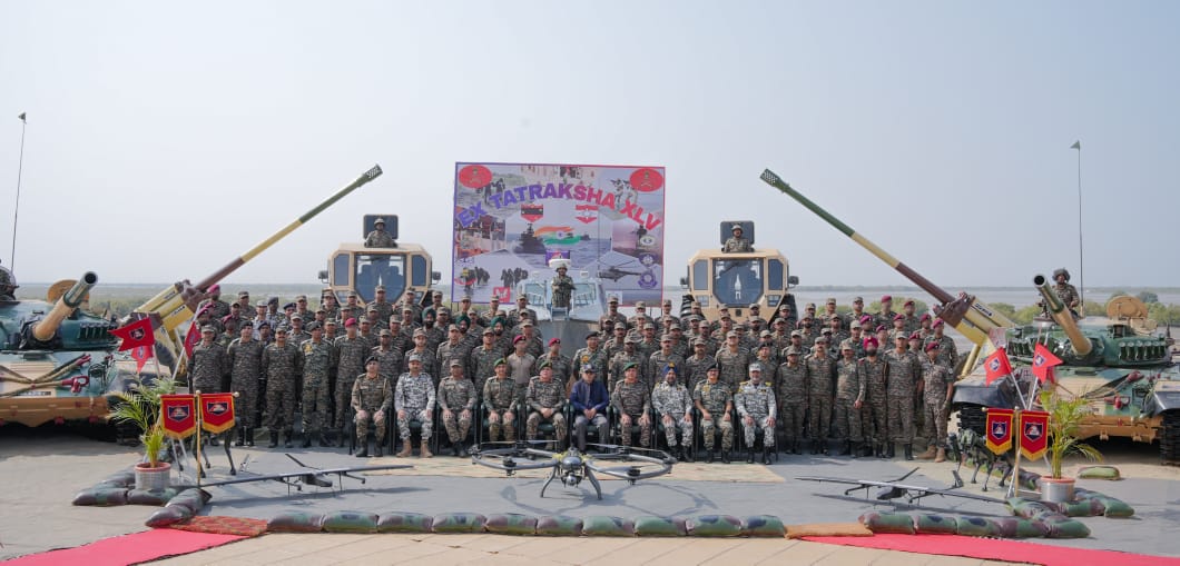 Rajesh Kumar Singh witnessed the multi-agency capability Exercise Tatraksha, showcasing seamless integration of the Indian Army, Indian Navy, Indian Air Force, Indian Coast Guard, BSF, and allied security agencies in coastal and amphibious operations. The exercise displayed real time surveillance, precision strikes, joint logistics and rapid response capabilities to handle emerging maritime and border threats, validating decisive integrated capability for a full spectrum of operations.