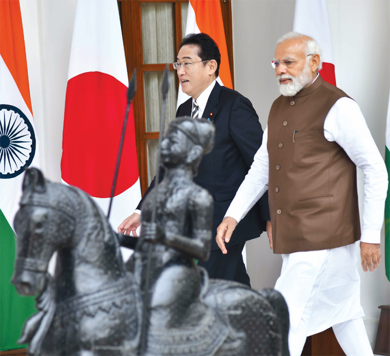 Indian Prime Minister Narendra Modi with Japanese counterpart Fumio Kishida
