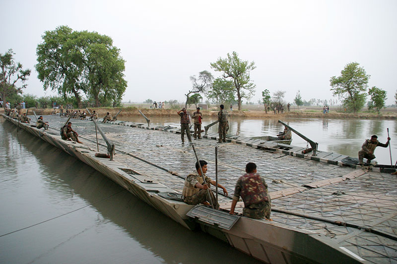 Army personnel building a bridge during Exercise Sanghe Shakti