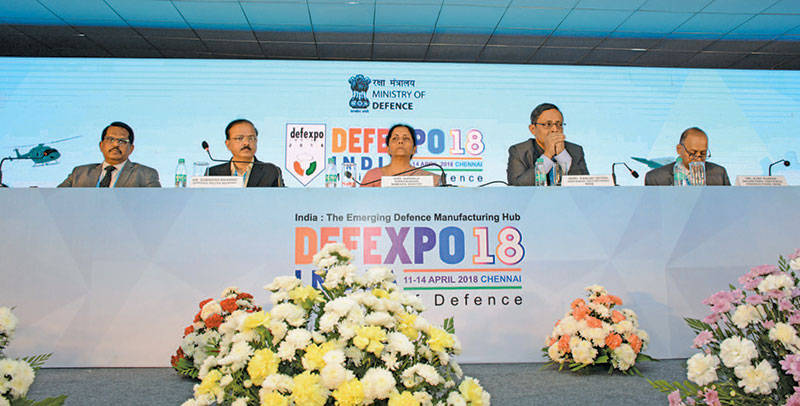 Defence minister Nirmala Sitharaman at her press conference at DefExpo 2018