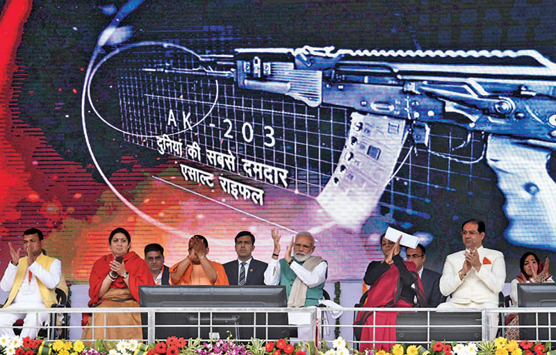Prime Minister Modi launching AK-203 rifles facility in Amethi, along with Union and state dignitaries
