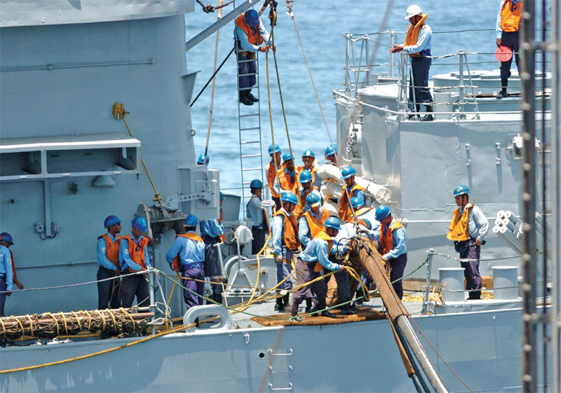 Indian and UK Navy personnel during exercise Konkan