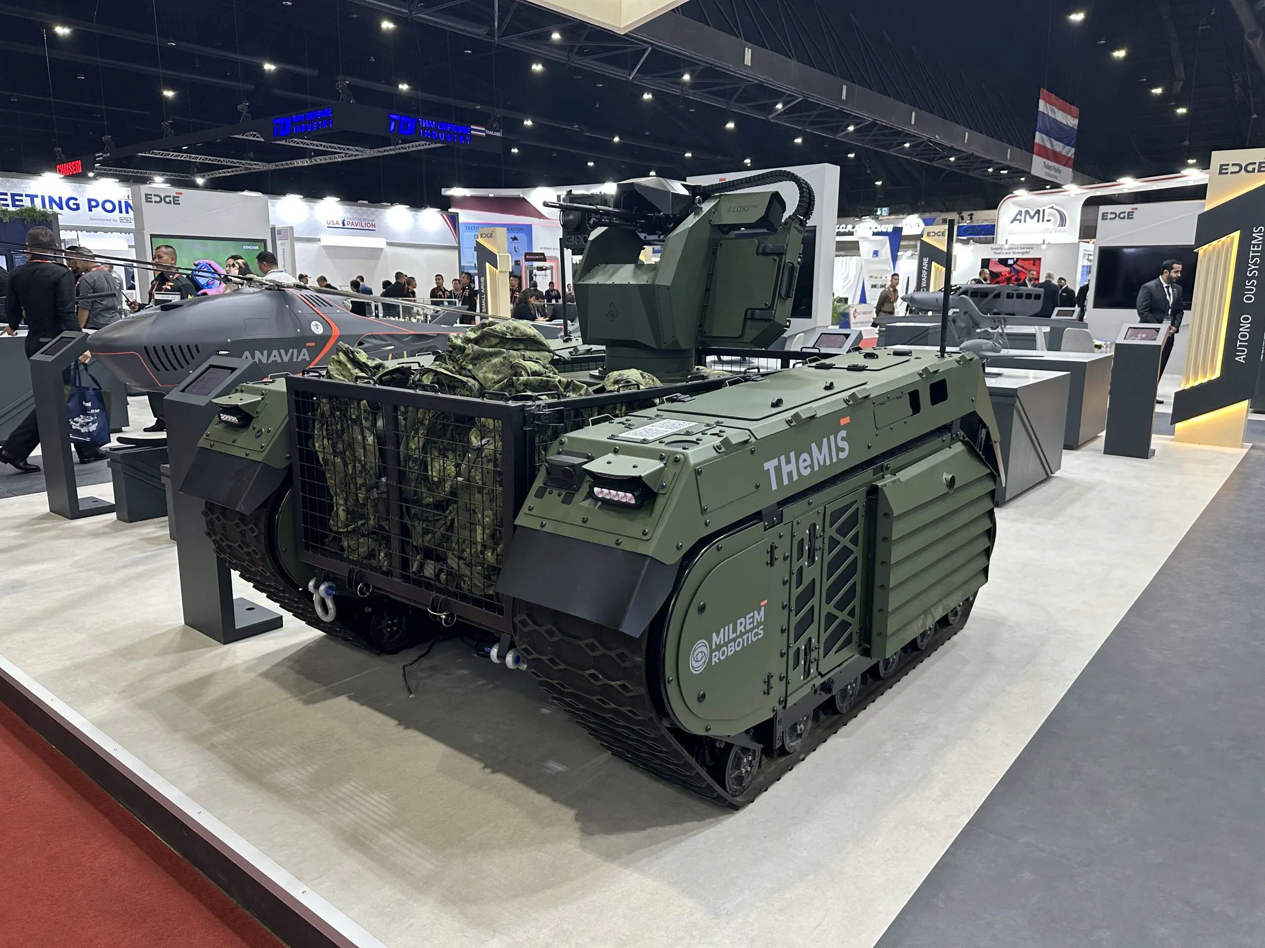 Milrem Robotics exhibited its THeMIS Combat unmanned ground vehicle (UGV) integrated with Valhalla’s LOKI Remote Controlled Weapon Station (RCWS) at Defense & Security 2025 in Bangkok, Thailand.
