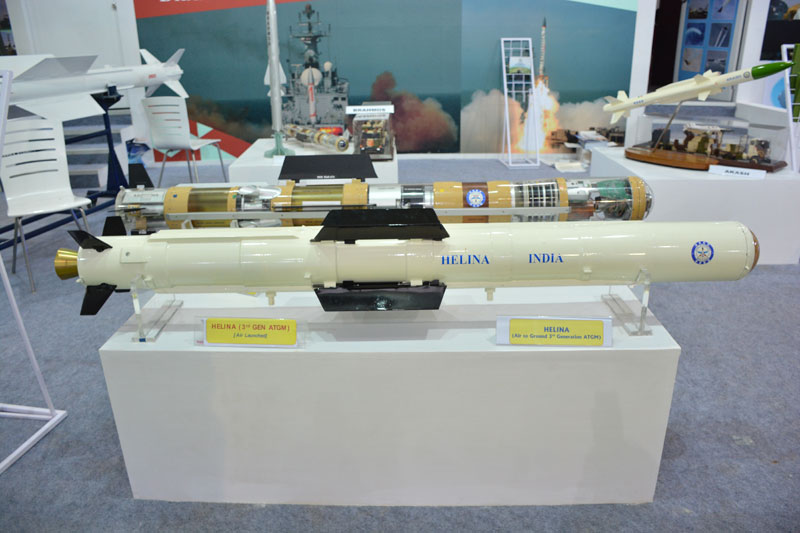 HELINA is an air-launched version of the Nag with extended range. This ATGM system, mounted on the Advanced Light Helicopter (ALH), has all weather day and night capability and according to Defence Research and Development Organisation (DRDO), “can defeat battle tanks with conventional armour as well as explosive reactive armour.” This missile can engage targets both in direct hit mode as well as top attack mode.