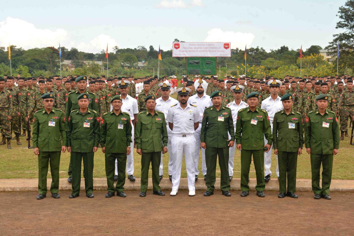 A delegation of five cadets led by Lieutenant Commander Hariom Bhardwaj and Lieutenant Commander Kartik Sachdeva of Indian Naval Academy (INA) visited Myanmar Defence Services Academy (MDSA) located at Pyin Oo Lwin, Myanmar for five days from 13 November 2017. During this period the officers and cadets of INA were acquainted with infrastructure facilities, selection processes, training methodology, academic syllabus, departments and training procedures at the Myanmar Defence Services Academy.