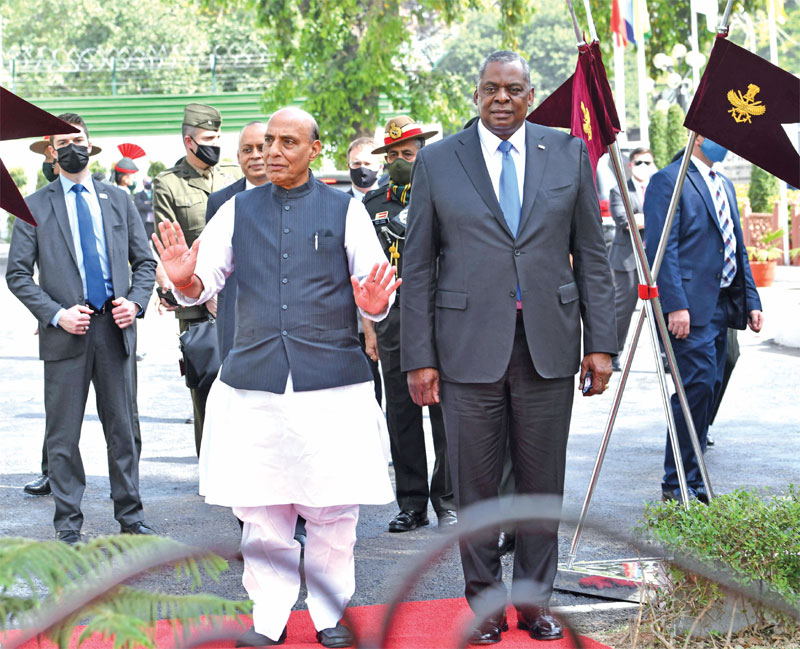 US Defence Secretary Lloyd Austin with defence minister Rajnath Singh