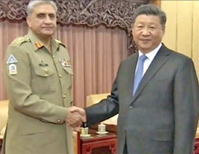 Pakistan Army Chief Qamar Javed Bajwa with Chinese President Xi Jinping