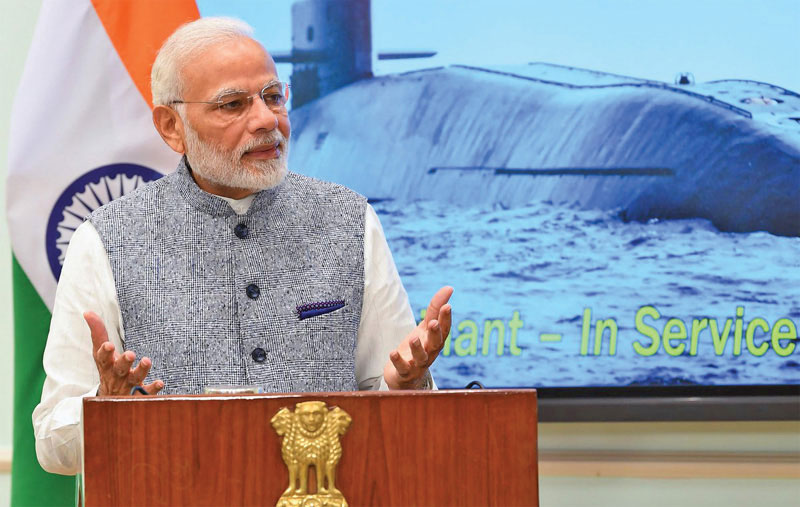Prime Minister Narendra Modi addressing SSBN-80’s crew in November 2018