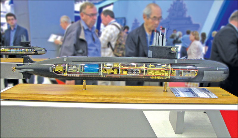 A model of the Russian Amur 1650 Kilo-class submarine with AIP crosssection