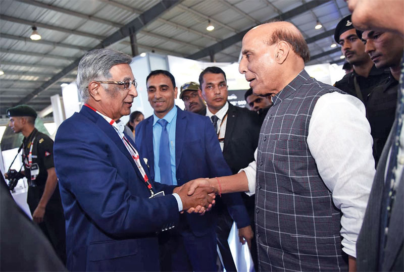 Defence minister Rajnath Singh with Kalyani Group’s Baba Kalyani