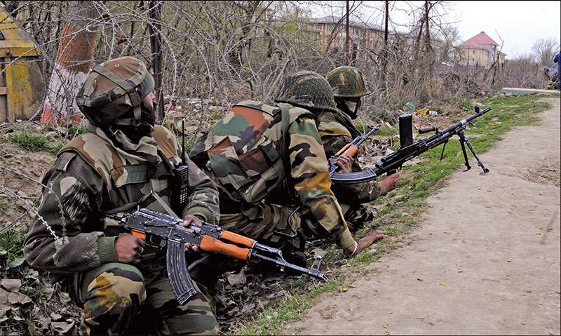 BATTLE-HARDENED Indian Army soldiers during an encounter in Bemina, Kashmir