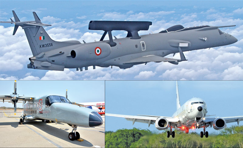 Clockwise from top IAF’s Netra AEW&C; Phalcon A-50I on IL-76; P-8I maritime reconnaissance aircraft;