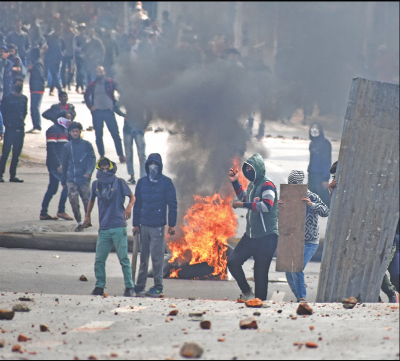 Kashmiri women attend the funeral procession of a slain militant, Shabir Ahmad Makroo, in Bijbehara, Anantnag