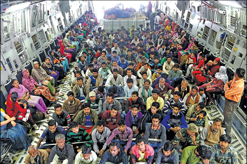 Rescued civilians on-board an IAF C-17 Globemaster aircraft during a HADR missions