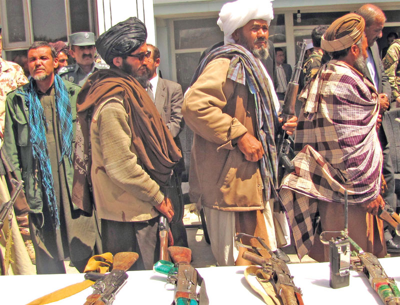 Former Taliban fighters return arms