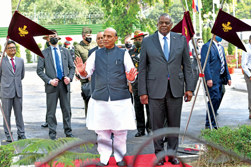 Defence minister Rajnath Singh and US Defence Secretary Lloyd James Austin III